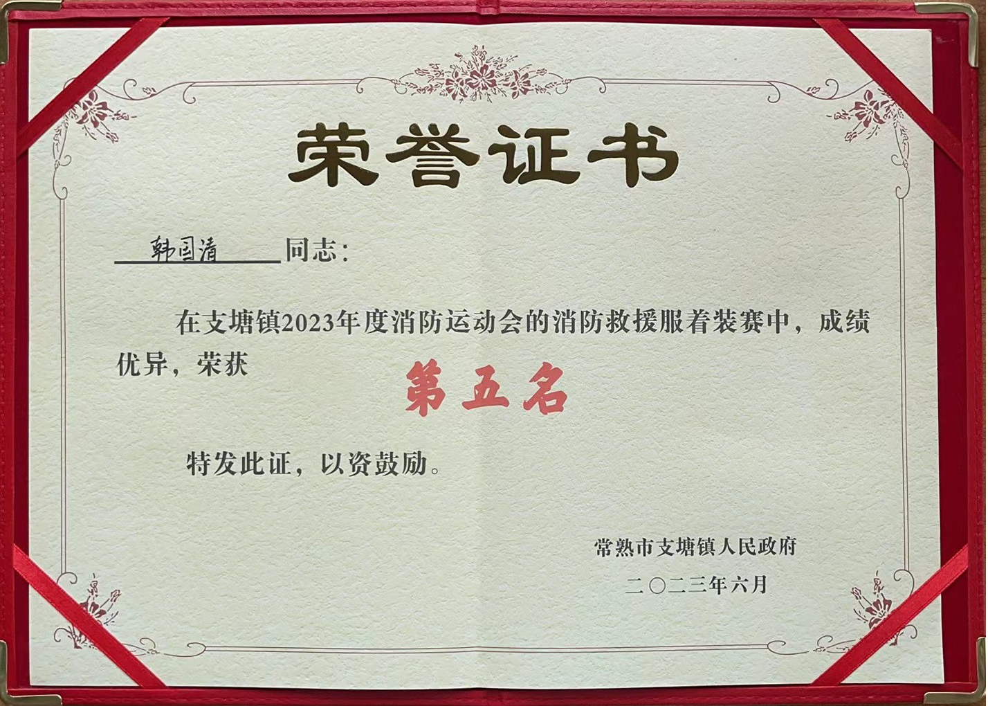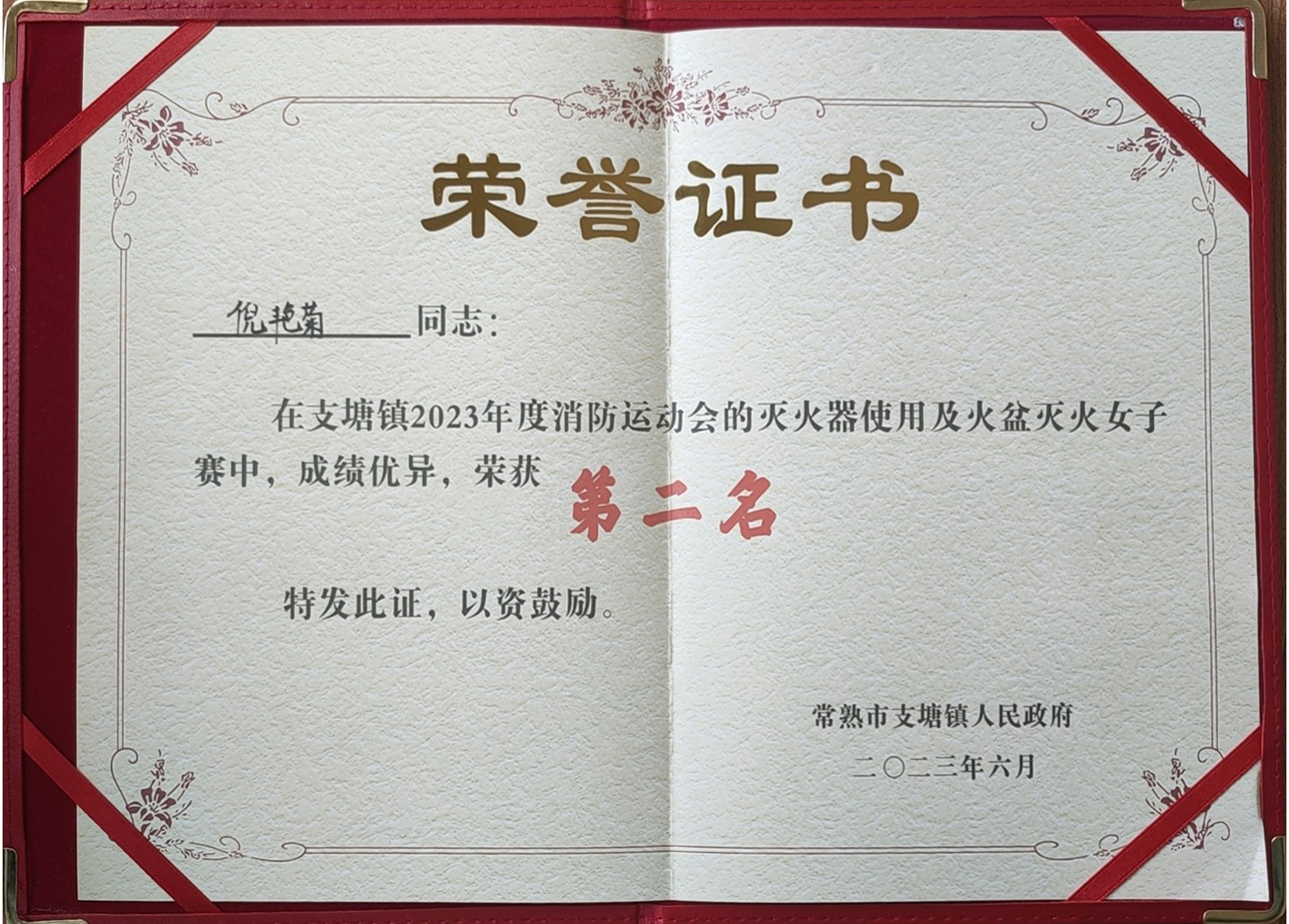 在比赛中,大家奋力拼搏,齐心协力,以饱满的热情,积极的心态取得了好成绩。项桥村获得团体第一名,倪艳菊在灭火器使用及火盆灭火女子赛中获得第二名,韩国清在消防救援服着装赛中获得第五名,高保荣、郭衫伟在双人消火栓连接水带出水打靶比赛中获得第六名。