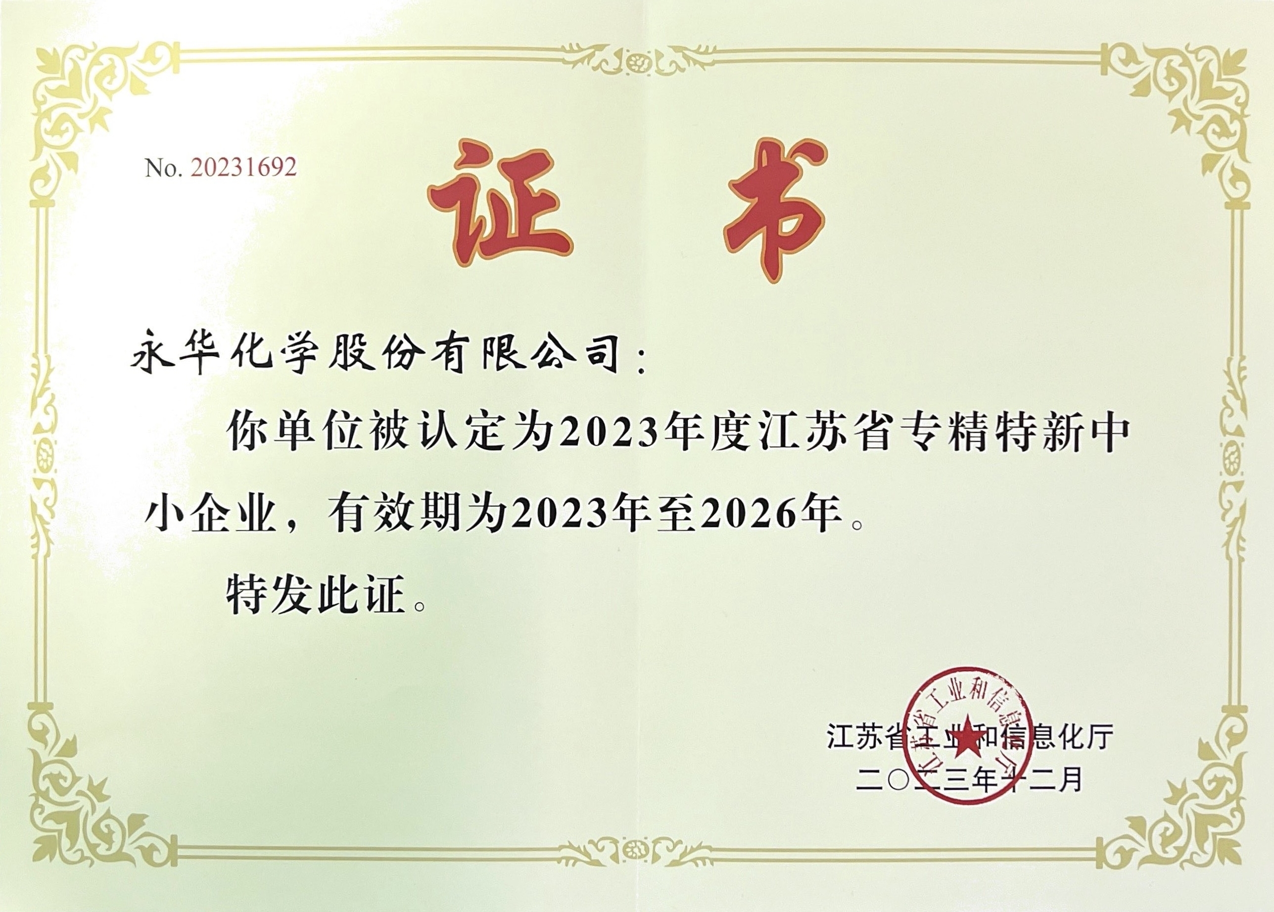 未来,永华化学股份将不负众望,载誉前行,加强科技创新与合作,提升公司核心竞争力,积极拓展市场,坚持“专业化、精细化、特色化、新颖化”的发展道路,发挥“专精特新”企业示范作用,为客户提供更优质的产品和服务。