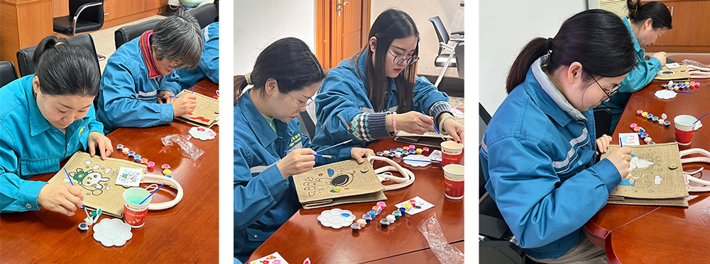 工会组织女职工开展了“画笔‘绘’精彩,把爱‘袋’回家”手工活动,在愉悦的氛围中,大家拿起画笔,认真绘制,发挥艺术想象力和绘画技巧,给帆布包涂上绚丽的色彩,体验亲手制作带来的乐趣。创作完成后,大家一起合影留念,展示自己的手工成果,现场欢声笑语不断,装满了成就和幸福。