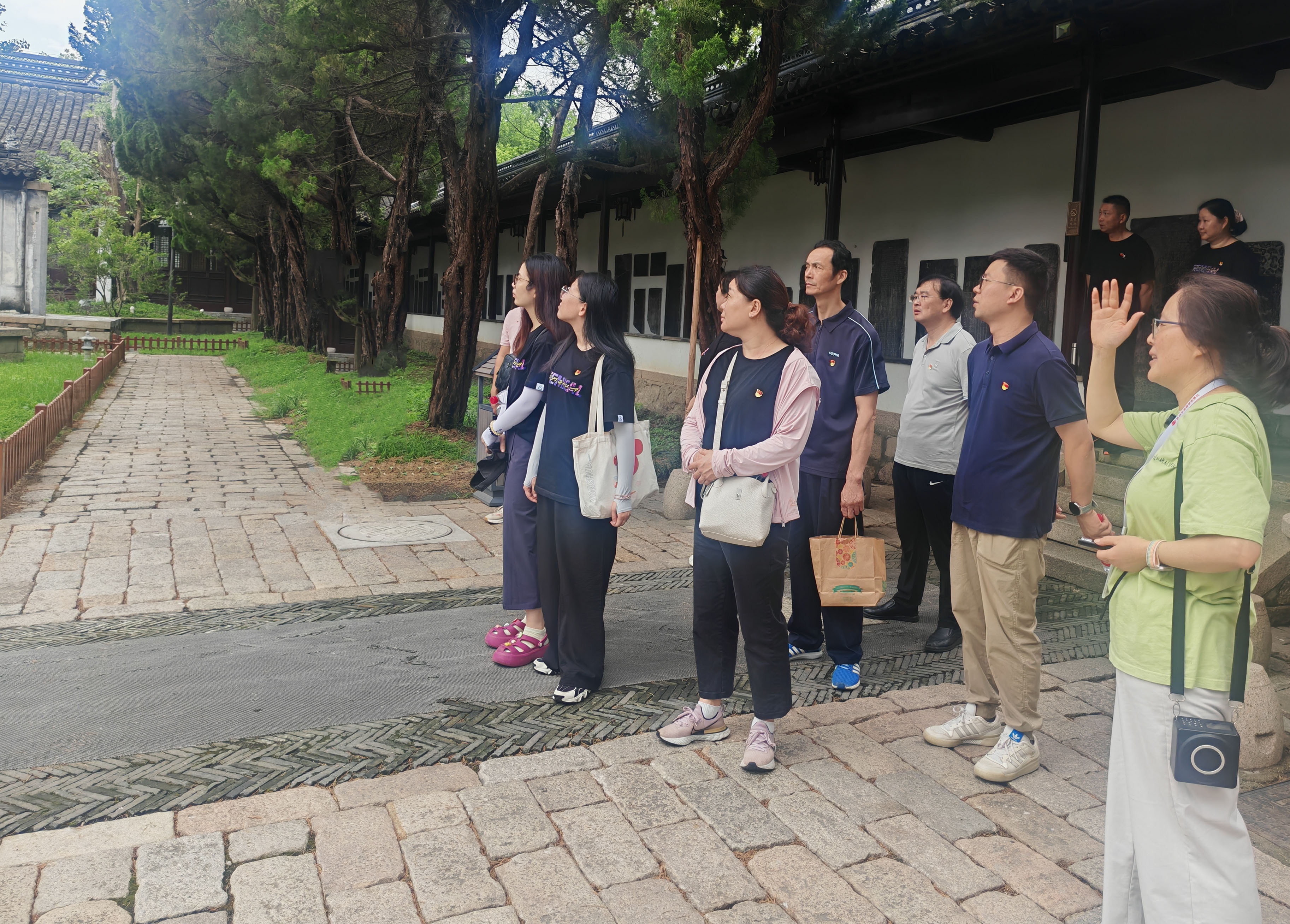 在白居易纪念苑,党员们深入了解这位唐代大诗人任苏州刺史期间的事迹。他简化赋税、兴办教育的惠民政策,以及勤政为民的态度和理念,引发党员强烈共鸣。