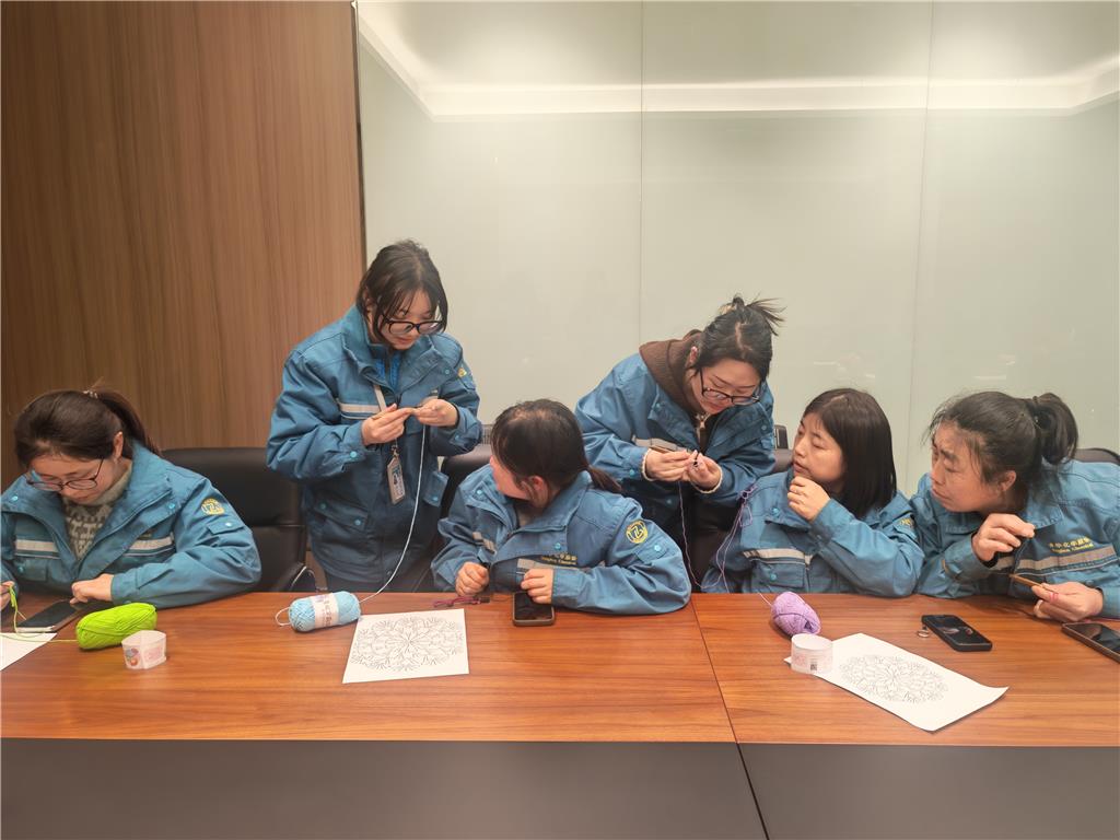 活动现场,大家专注制作、互帮互助,一根根彩色毛线在指尖灵动穿梭,渐渐化作一个个精致可爱的杯垫,洋溢着轻松欢乐的氛围。