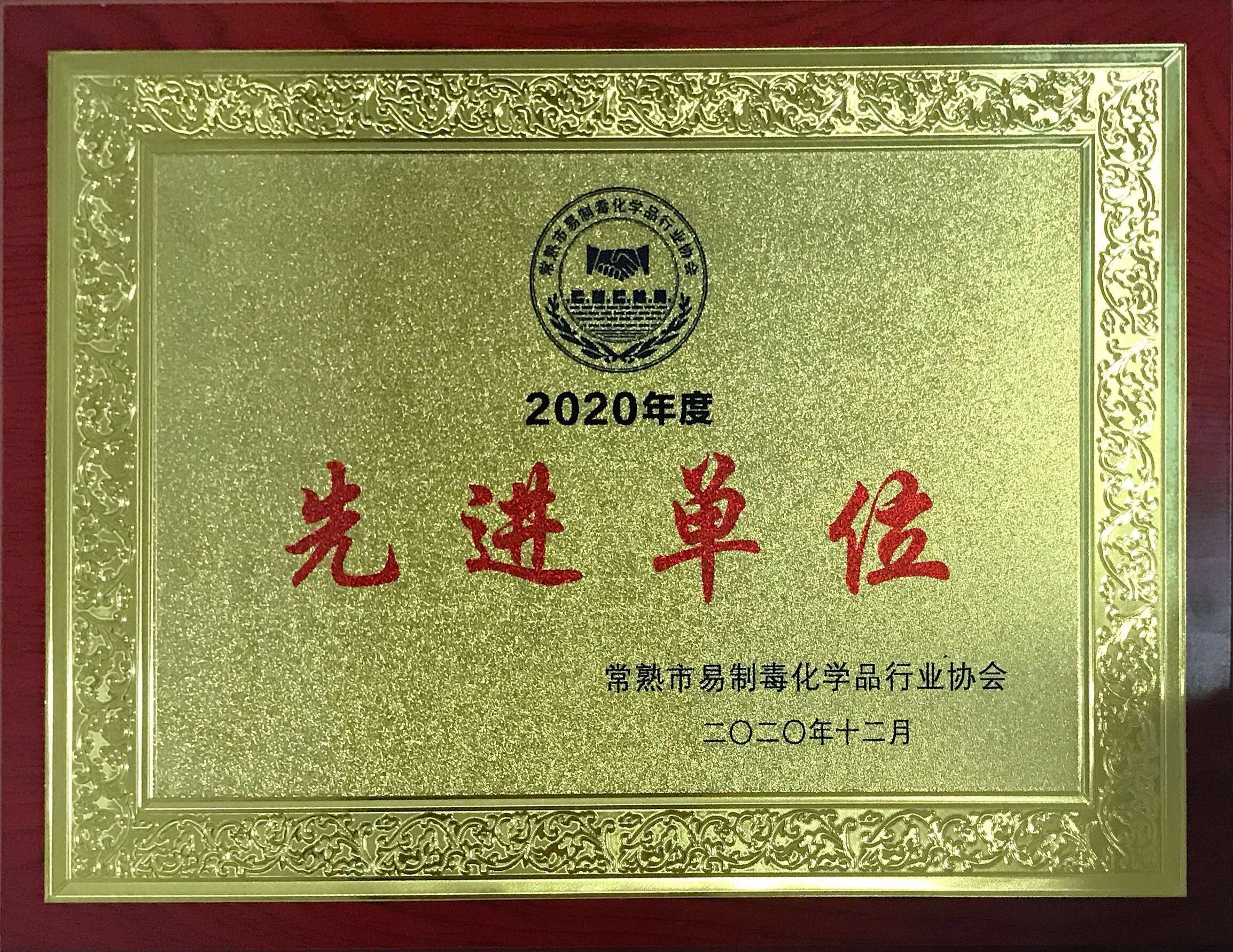 与此同时,我司还被常熟市易制毒化学品行业协会评为“2020年度先进单位”。